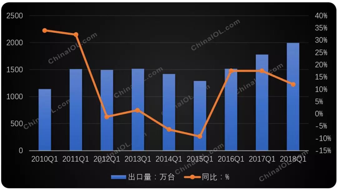 数据显示,2018年一季度中国家用空调出口量、出口额及出口均价均有不同幅度的提升:出口量1998.2万台,达到了历史新高,同比增长12.1%;出口均价为185.7美元/台,同比增长6.7%,均价上涨主要源于人民币的升值、汇率的走高及原材料的成本上升。