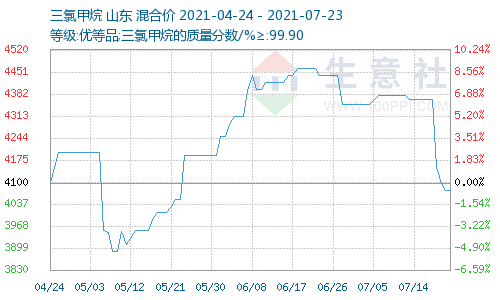 三氯甲烷,原料液氯价格低位,成本面支撑转弱。据生意社了解,截至7月19日原材料液氯山东地区槽车液氯主流出厂价报1050元/吨左右;加之虽然已步入连续高温天气,但近期制冷剂销量未见明显增加,受制冷剂库存增加影响,制冷剂装置检修增多,对三氯甲烷支撑转弱。山东地区三氯甲烷企业出厂价下调,市场报盘跟跌。