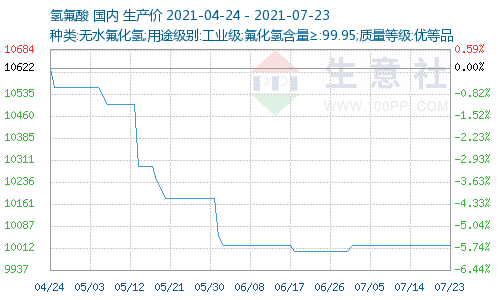 原料方面,7月23日,国内无水氢氟酸厂家主流价格为9300-9600元/吨,场内商家出厂价格走势暂稳,国内氢氟酸厂家开工率正常,场内货源供应稳定,受萤石价格高位影响,近期下游制冷剂行情走势暂稳,场内按需采购为主,预计后期场内价格或将走势稳定。