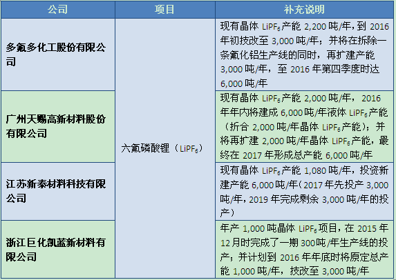 表2:2015年中国六氟磷酸锂主要新建项目一览