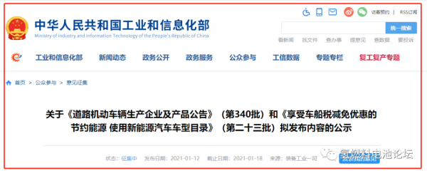 1月12日,工信部公布《道路机动车辆生产企业及产品公告》(第340批),其中申报新能源汽车产品的共有72户企业198个型号,其中纯电动产品共62户企业166个型号、插电式混合动力产品共8户企业11个型号、燃料电池产品共13户企业21个型号。