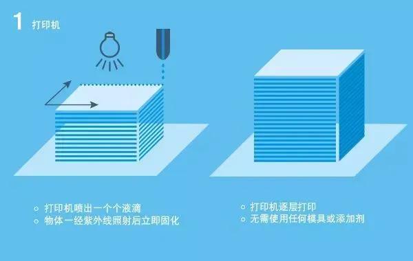 基于“按需喷墨”打印原理。打印头将有机硅微液滴(体素)逐滴沉积在工作平台上,然后液滴相互融合,然后将它们短暂地置于紫外线辐射下,让其永久地结合在一起。固化之后会形成一层均质层,接着再把下一层打印在均质层上。