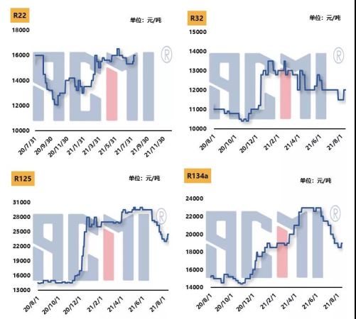 R134a:成本仍高位运行,价格小幅回升,截至周五,参考均价19000元/吨。