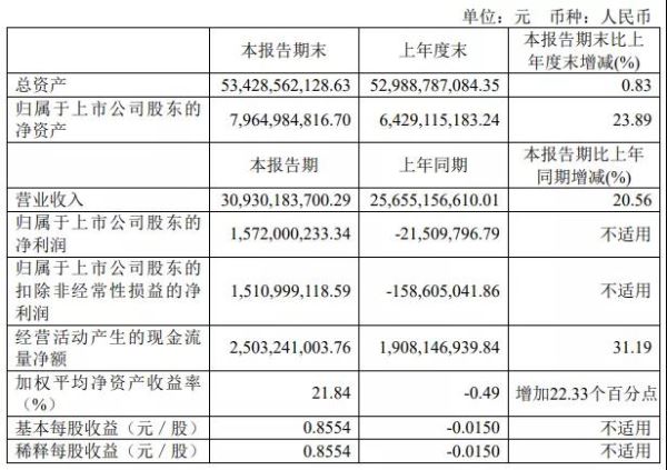 8月16日晚间,云天化(SH 600096)发布半年度业绩报告称,2021年上半年营业收入约309.3亿元,同比增加20.56%;归属于上市公司股东的净利润盈利约15.72亿元;基本每股收益盈利0.8554元。2020年同期营业收入约256.55亿元;归属于上市公司股东的净利润亏损约2151万元;基本每股收益亏损0.015元。