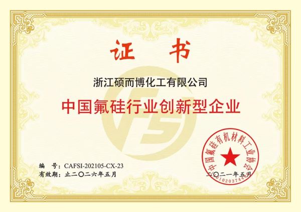 硕而博将技术的创新和企业的管理相结合。作为“国家高新技术企业”、“浙江省科技型中小企业”、“衢州市专利示范企业”。同时具备“衢州市有机硅新材料技术研发中心”、“浙江省省级高新技术企业研发中心”、“衢州市工程技术研究开发中心”,从成立至今共获得授权发明专利5项,实用新型专利32项。通过了ISO9001:2015质量管理体系、ISO14001:2015环境管理体系、ISO45001:2018职业健康安全管理体系和知识产权管理体系认证。