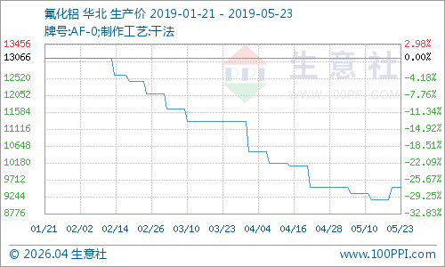 2019年5月23日氟化工价格涨跌榜中上涨的商品共3种,下跌的商品共0种,涨跌为0的商品共2种。上涨的主要商品包括:萤石(0.85%)、氢氟酸(0.27%)和三氯甲烷(1.74%);平稳的产品包括:氟化铝和冰晶石。