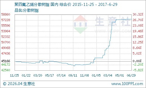 行业:受环保压力,国内聚四氟乙烯市场行情长期处于不温不火的局面,生产厂家多数低负荷生产,库存较少,国内整体开工率低下,维持在4成左右。近期企业多采取限产报价态度,个别厂家灵活调整市场价格。