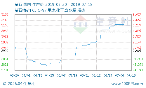 7月18日氟化工原料市场价格走势暂稳,原料萤石价格价格为3150元/吨,近期国内部分萤石装置开工一般,场内矿山和浮选装置正常开工,场内萤石供应紧张,但是近期下游行情有所上涨,萤石价格受影响走高。南方萤石市场装置开工方面一般,南方地区萤石市场价格上涨。截止18日国内内蒙古地区萤石价格在2900-3100元/吨,福建地区萤石商谈主流在3000-3300元/吨,河南地区萤石价格在3000-3300元/吨,江西地区萤石价格在3000-3300元/吨,预计后期萤石价格或将维持高位震荡。