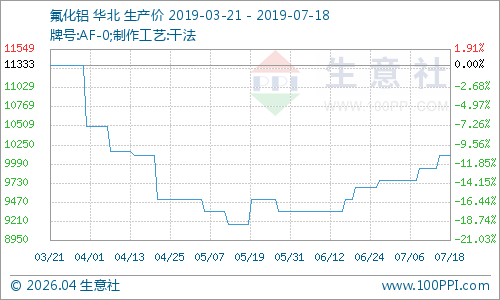 氟化铝产品价格走势暂稳,场内供应正常,交易行情一般,郑州天瑞晶粒科技有限公司氟化铝出厂报价11000元/吨,山东鲁增化工氟化铝出厂报价为10800元/吨,郑州泽润能源化工有限公司氟化铝报价为9800元/吨,河南中色东方韶星实业氟化铝报价9500元/吨。