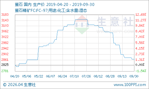 行业:9月份上游萤石行业装置开工一般,氢氟酸价格走势持续下滑,萤石场内产品现货供应充足,走货行情较差,场内库存有所增加,萤石市场价格走低。