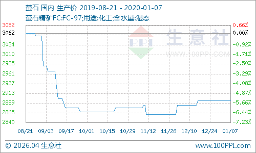 1月6日萤石商品指数为101.56,与昨日持平,较周期内最高点127.49点(2019-01-03)下降了20.34%,较2016年12月18日最低点49.21点上涨了106.38%。(注:周期指2011-09-01至今)
