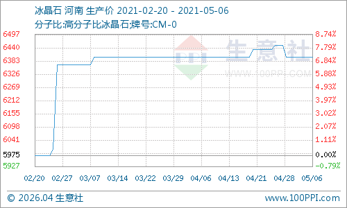近期国内冰晶石价格走势暂稳,场内装置运行稳定,供应正常,国内商谈价格在6500-7000元/吨左右,实际成交价以商谈为主。综合来看,氟化工产业近期行情一般,预计后期氟化工行业走势或将维持震荡。