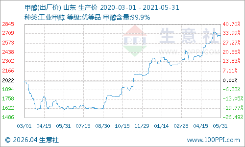 原材料价格重回高位,成本面偏强支撑。5月液氯价格呈“V”字形走势,月中下探,月底回升,成本面有一定拖拽和支撑。甲醇价格整体处于先涨后跌整体上涨态势,成本面有一定支撑。据生意社了解,原材料液氯山东地区槽车液氯主流出厂价由5月初的1750元/吨左右下跌至5月中旬1150元/吨,月底回升至2050元/吨;甲醇价格由月初的2560元/吨上涨至月末的2672元/吨,整体小幅上涨4.38%。