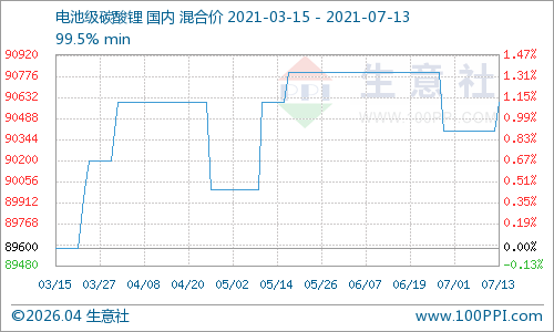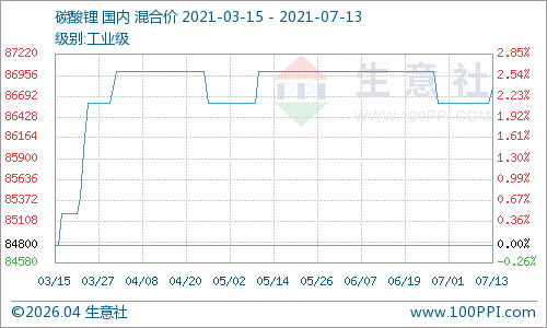 通过观测市场变化来看,进入7月碳酸锂价格在平稳了一周之后,13日价格稍有提振,目前市场需求稳定,碳酸锂厂家多以积极出货为主。碳酸锂主要用于制备磷酸铁锂和普通三元正极材料,可以从盐湖或云母中提取制作。随着盐湖的供应有季节性的因素影响,三季度后青海地区盐湖产量会相对减少,对碳酸锂价格有提振作用。