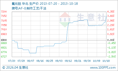 据生意社大宗榜数据显示,本周国内干法氟化铝行情上涨。周初国内企业出厂报价均价在060元/吨左右,到本周末国内企业对外报价波动至7160元/吨左右,整体变化了1.42%,当前价格同比去年下降了3.67%。