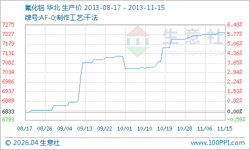 产业链,上游原料萤石价格相对稳定,北方萤石厂家由于天气变冷逐渐停产利好氟化铝价格;下游电解铝企业开工增加,拉动对氟化铝的市场需求,询价积极;
