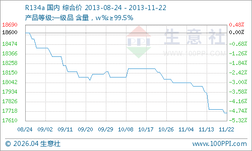 产品:本周R134a市场供应平稳,需求清淡,市场交投不积极,市场行情小幅走软;