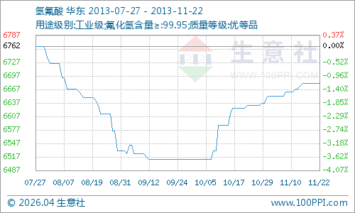 产品:本周国内氢氟酸开工率较低,成交有限。