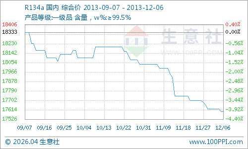 产品:本周R134a市场供应平稳,需求清淡,市场交投不积极,市场行情小幅走软;
