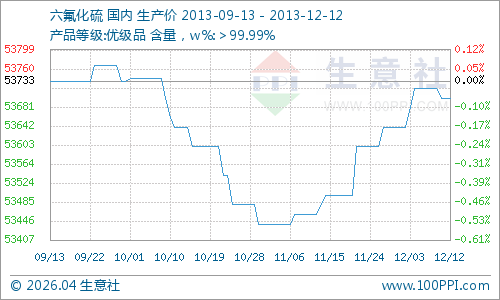 12月12日华东地区六氟化硫市场行情平稳,主流市场价格在5.28-5.45万元/吨,断路器等行业需求情况尚可,贸易商交投一般,走货平稳;12月12日西南地区六氟化硫市场行情平稳,主流市场价格在5.35-5.5万元/吨,市场供应平稳,断路器等行业需求情况尚可,市场交投一般;12月12日华中地区六氟化硫市场行情平稳,主流市场价格在5.4-5.5万元/吨左右,供应充足,下游断路器等行业需求情况尚可,厂家走货较好。