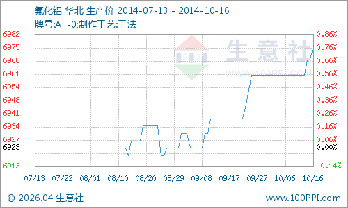 生意社化工分社氟化铝产业分析师认为:国内干法氟化铝国内主流报价依旧维持在6900-7100元/吨左右,预计下周干法氟化铝价格保持平稳状态。